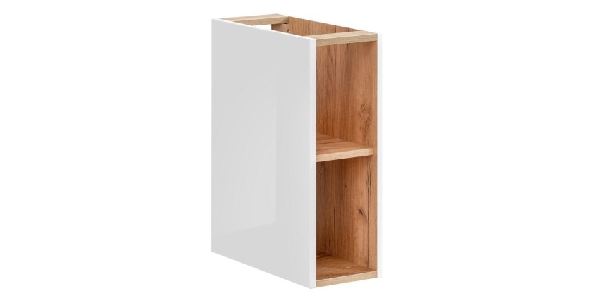 Optimisez le rangement de votre salle de bain avec cet accessoire mural NALYA 57 cm. Avec sa finition brillante blanche et sa touche de chêne clair, il s’accorde parfaitement aux meubles sous vasque de la même collection. Suspendu et compact, il apporte un espace de rangement supplémentaire sans encombrer visuellement l’espace.