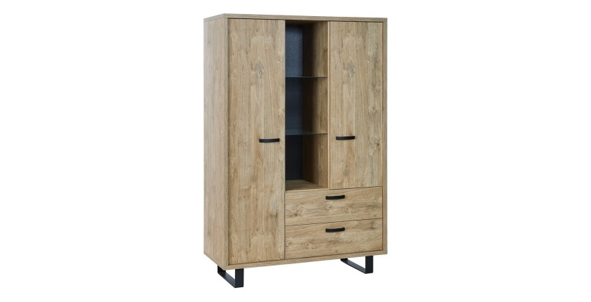 Son coloris chêne doré et ses pieds en métal lui confèrent un style chic et intemporel, parfait pour s’intégrer dans une décoration moderne comme classique. Conçu en panneaux de particules haute densité et MDF de première qualité, ce meuble garantit robustesse et longévité.