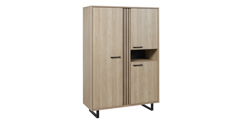 Le coloris chêne clair associé à des pieds en métal confère à ce meuble un look industriel chic, parfait pour une décoration contemporaine. Fabriqué en panneaux de particules haute densité et MDF de qualité, il est robuste et pensé pour durer dans le temps.
