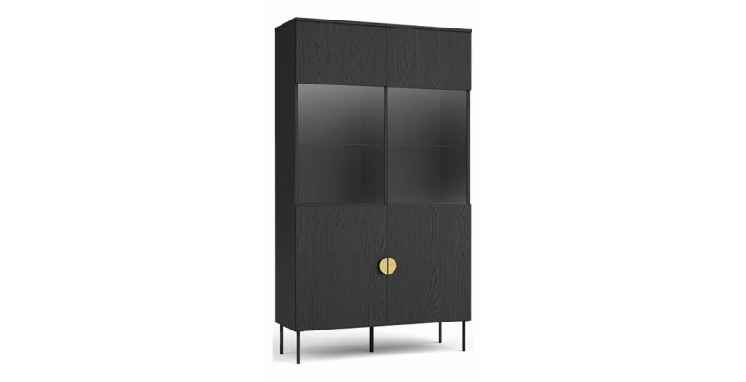 Vitrine Noire avec Portes Vitrées et Poignées Dorées - Collection MONDO