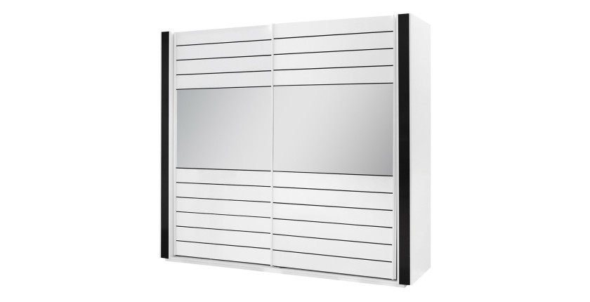 Armoire blanche et noire LINA – 220 x 225 x 68 cm avec 2 grandes penderies et 2 grands miroirs