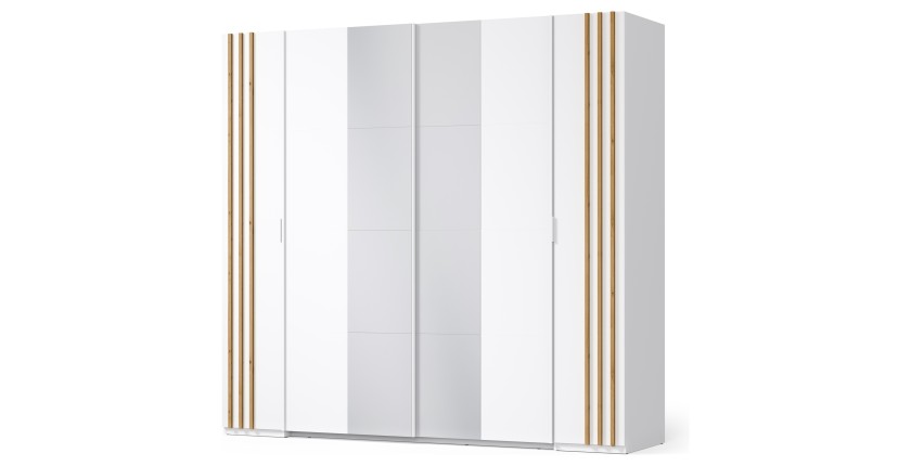 Alliant style contemporain et grande capacité de rangement, l’armoire FLORENCE est le meuble parfait pour une chambre élégante et bien organisée. Avec ses 2 portes coulissantes et 2 portes battantes, elle offre une accessibilité optimale à ses 10 étagères spacieuses et ses 2 barres de penderie. Son coloris blanc lumineux rehaussé par des détails effet chêne apporte une touche chaleureuse à votre intérieur.