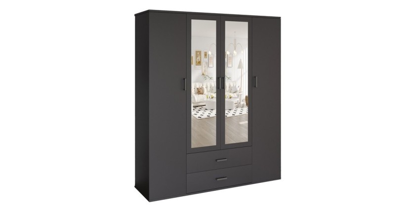 Armoire TOM 4 portes avec miroirs – L160 cm – Coloris gris anthracite – Élégance et capacité XXL