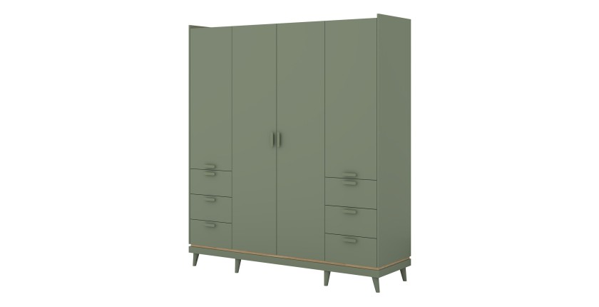 Découvrez l’armoire NOKI 4 portes vert et bois au style scandinave