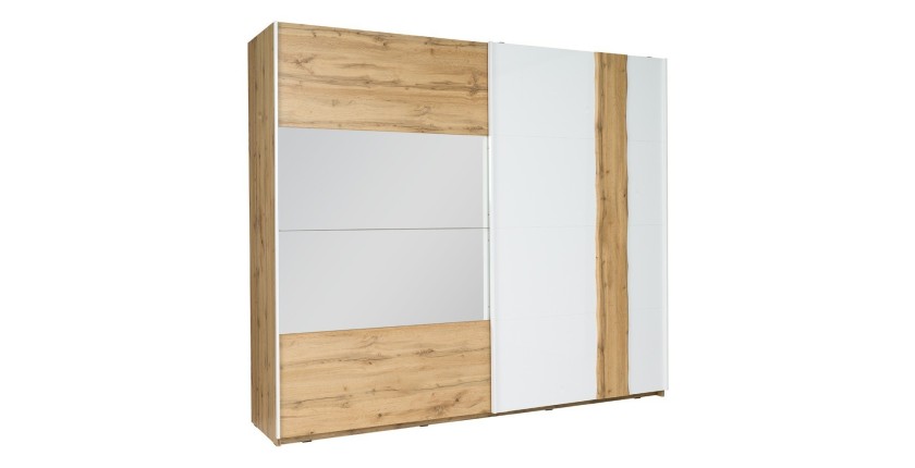 Armoire Wood – Élégance en chêne et blanc avec miroir et 2 portes coulissantes