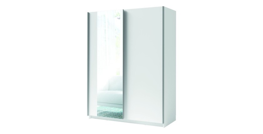 Armoire GOZU 2 portes coulissantes avec miroir - Coloris Blanc