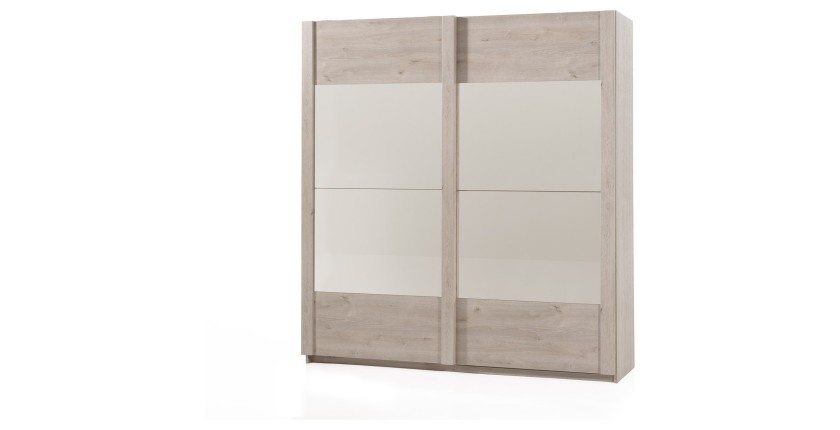 Cette armoire est équipée de 2 portes coulissantes avec miroir offrant un espace de rangement généreux pour vos vêtements, garantissant ainsi un espace bien organisé et ordonné dans votre chambre.