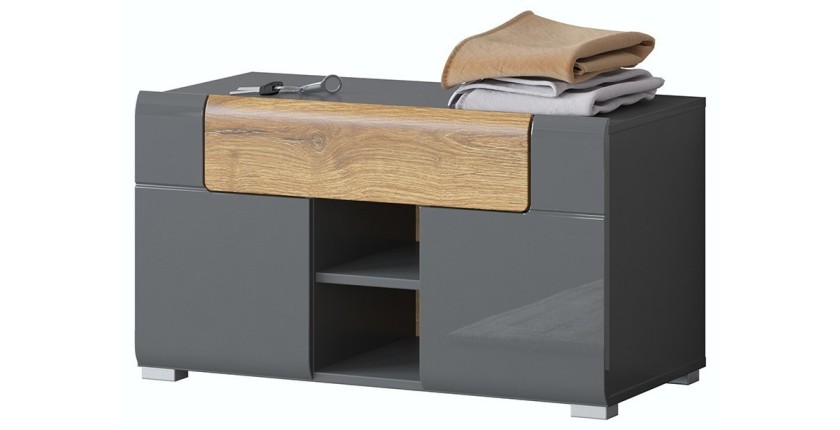 Apportez du style et de la fonctionnalité à votre entrée avec le banc de rangement OHIO. Avec ses 2 portes, son grand tiroir et ses 6 niches, ce meuble au coloris gris anthracite et au tiroir coloris chêne vernis offre une solution de rangement élégante et pratique. Parfait pour garder votre entrée organisée et accueillante.