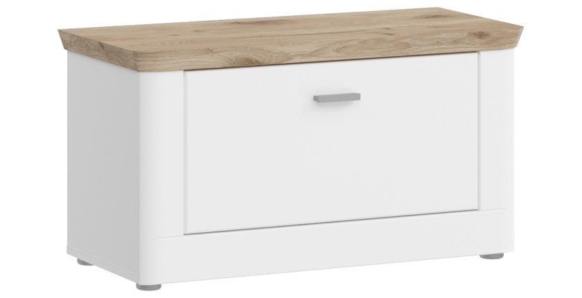 Avec son coloris blanc mat rehaussé d’un plateau décor chêne, il s’inscrit dans une ambiance chaleureuse et élégante typique du style campagne. Ce banc est conçu en panneaux de particules et MDF de première qualité, pour une solidité durable et un entretien facile.