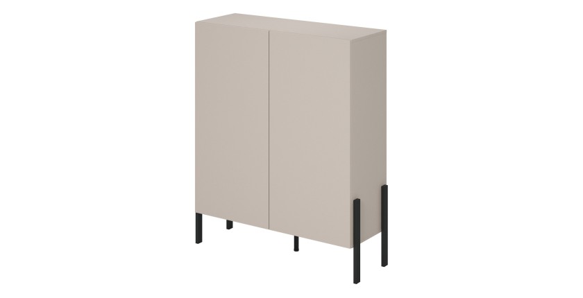 Modernisez votre salon avec l’armoire Salma, habillée d’un beige cashmere deep matte contrasté par un noir mat élégant. Ses deux portes dotées du système Push-to-Open offrent un accès sans poignée visible, tandis que les pieds en métal assurent robustesse et stabilité.