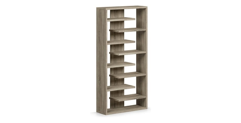 La bibliothèque MIRE est un élément essentiel pour organiser votre intérieur. Simple et pratique, elle s'adapte à toutes les pièces et à toutes les utilisations. Que ce soit pour ranger des livres dans votre salon, des bibelots dans une chambre à coucher ou des dossiers dans un bureau, cette étagère à 8 compartiments d'une hauteur de 185 cm est idéale. Fabriquée en panneaux de particules de haute qualité, elle peut supporter jusqu'à 20 kg de poids par étagère et se nettoie facilement d'un simple coup de chiffon. Vous la recevrez sous forme d'un kit comprenant une notice de montage. L'assemblage est un jeu d'enfant et ne demande que peu de temps.