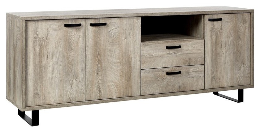 Ce buffet est équipé de 3 portes, 2 tiroirs et 1 niche ouverte, permettant d'organiser efficacement votre vaisselle, linge de maison ou objets déco. Parfait pour les familles ou les amateurs d'espaces bien rangés.