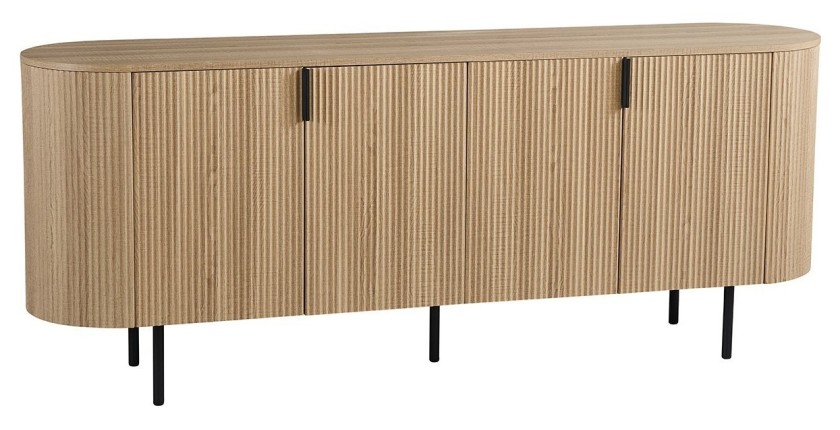Sa structure en MDF associée à une finition papier 3D résistante imite parfaitement l’aspect du bois naturel tout en garantissant une excellente durabilité. Avec ses dimensions généreuses de L200 x H80 x P45 cm, ce bahut s’intègre parfaitement dans les intérieurs modernes, scandinaves ou épurés.