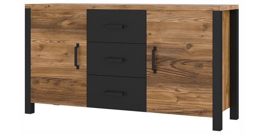 Ajoutez une touche moderne à votre salle à manger avec le buffet DARWIN. Mesurant 146,9 cm de large, ce meuble est conçu pour offrir un espace de rangement fonctionnel, avec 2 portes et 3 tiroirs.