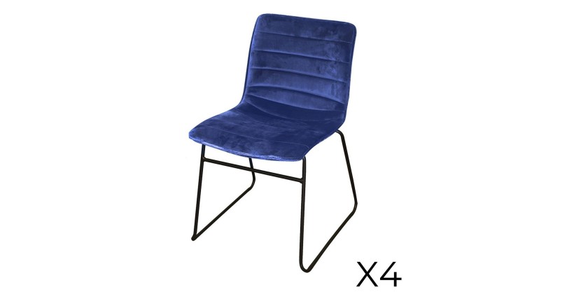 Lot de 4 chaises NETS – Style industriel avec revêtement en velours bleu