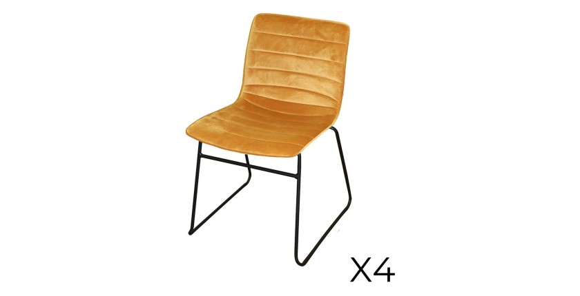 Lot de 4 chaises NETS – Style industriel avec revêtement en velours jaune