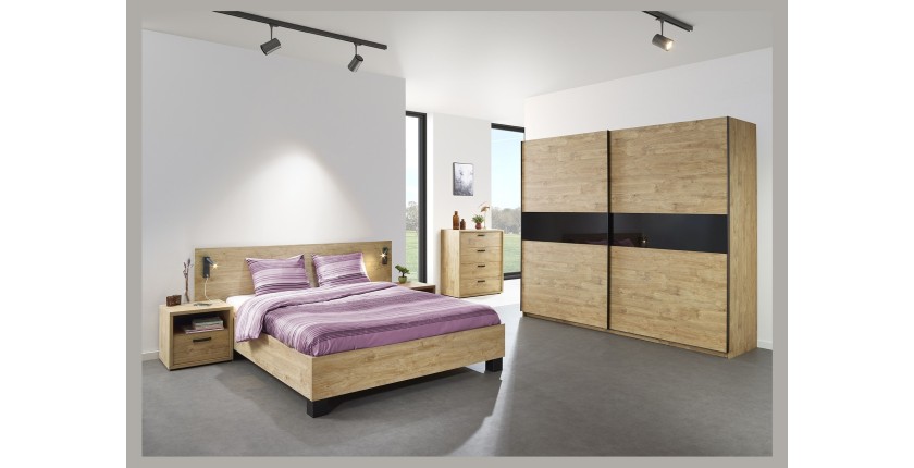 - MODELE : Chambre complète collection MORGANE composée d'un lit 140x200, d'une armoire 250cm, d'une commode et de deux chevets.