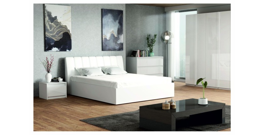 design moderne : un style épuré et élégant avec une finition en blanc brillant qui illumine la chambre.