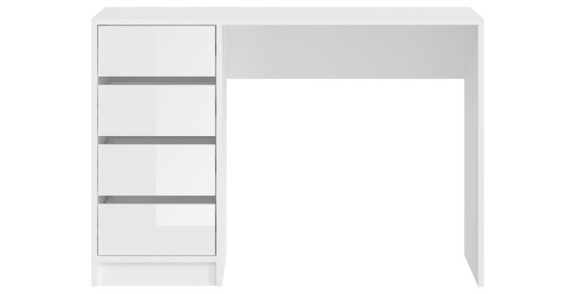 Organisez votre espace beauté avec la coiffeuse ESTRELLA blanche, un meuble pratique et élégant au style classique. Cette coiffeuse propose 4 tiroirs de rangement latéraux pour vos accessoires, maquillage, bijoux ou soins, le tout dans une finition blanche laquée moderne et lumineuse.