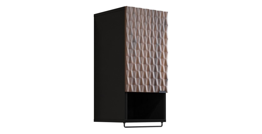 Meuble de salle de bain 1 porte et 1 niche collection KING – Chêne foncé et noir