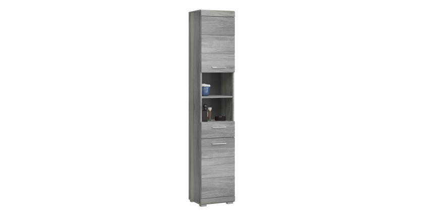 Optimisez l'espace de votre salle de bain avec la colonne de rangement AVENSIO, comprenant 2 portes, 1 tiroir et 2 niches. En gris laqué, ce meuble est à la fois pratique et esthétique, parfait pour une salle de bain moderne et bien organisée.