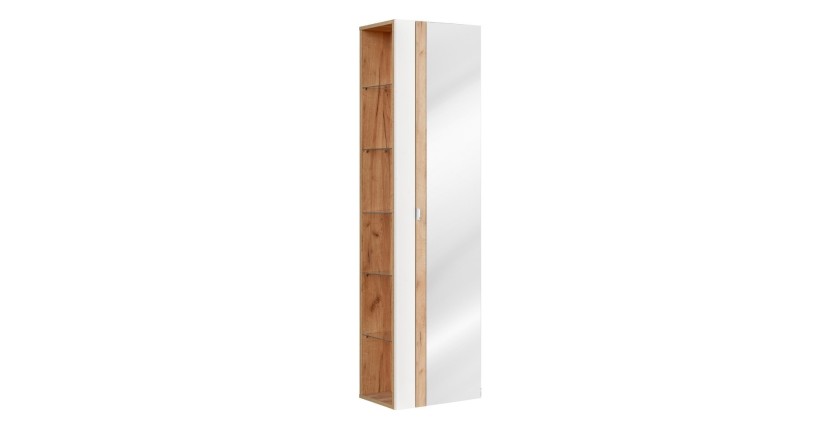 La colonne NALYA 170 cm avec miroir s'impose comme un choix raffiné pour optimiser l’aménagement de votre salle de bain. Alliant un blanc brillant lumineux à un décor chêne clair chaleureux, ce meuble suspendu au format vertical intègre un miroir pratique, idéal pour les routines du quotidien.
