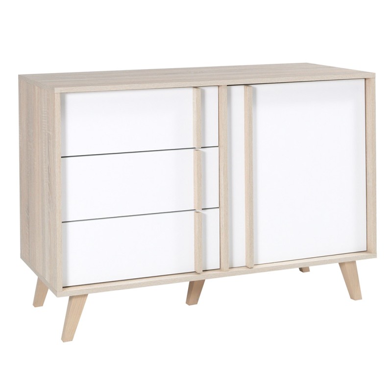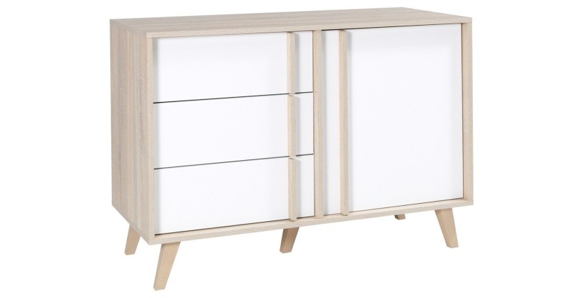 Commode MALMO – Élégance en chêne clair et blanc avec 1 porte et 3 tiroirs