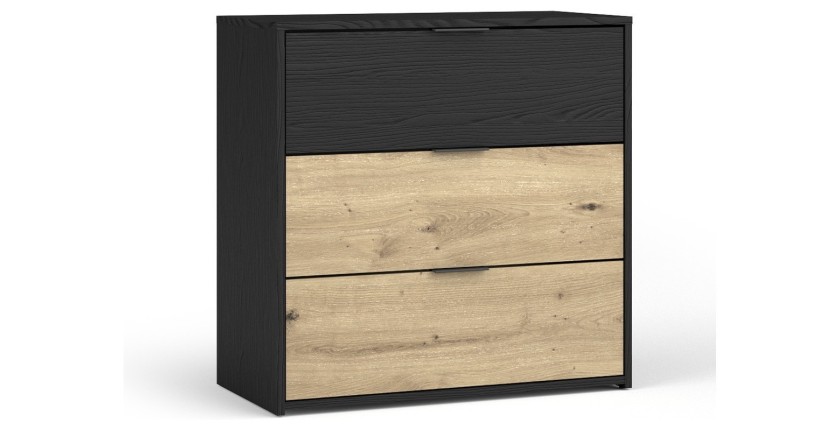 Commode MELODY - 3 tiroirs - 80x80x40 cm - noir graphite et chêne clair