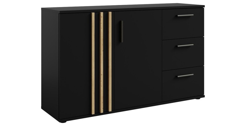 Commode VARIA - 2 portes et 3 tiroirs - 120x73x35 cm - Noir et chêne artisan