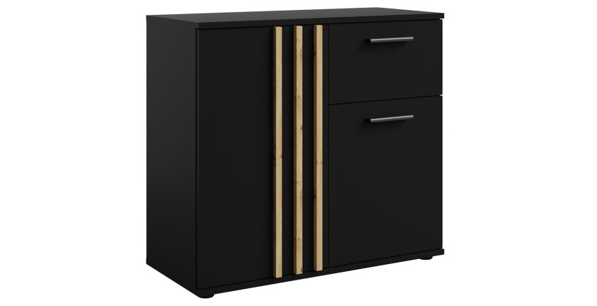 Commode VARIA - 2 portes et 1 tiroir - 80x73x35 cm - Coloris noir et chêne Artisan