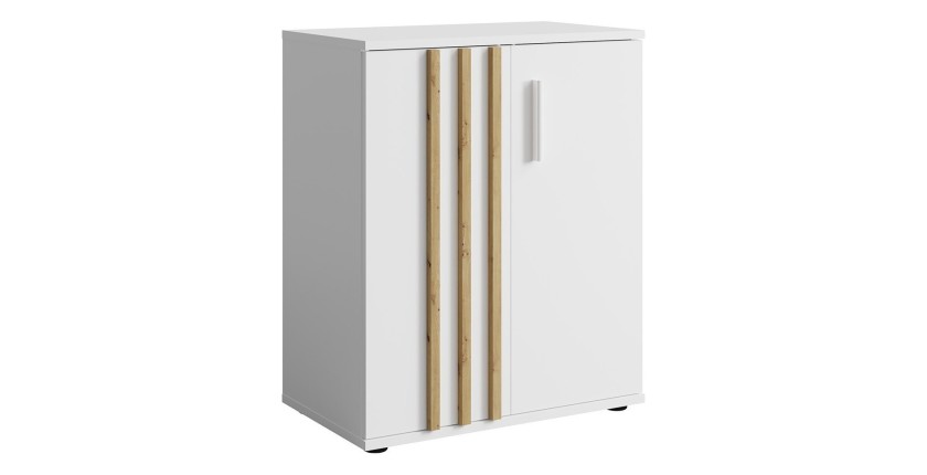 Commode VARIA - 2 portes - 60x73x35 cm - Blanc et Chêne Artisan