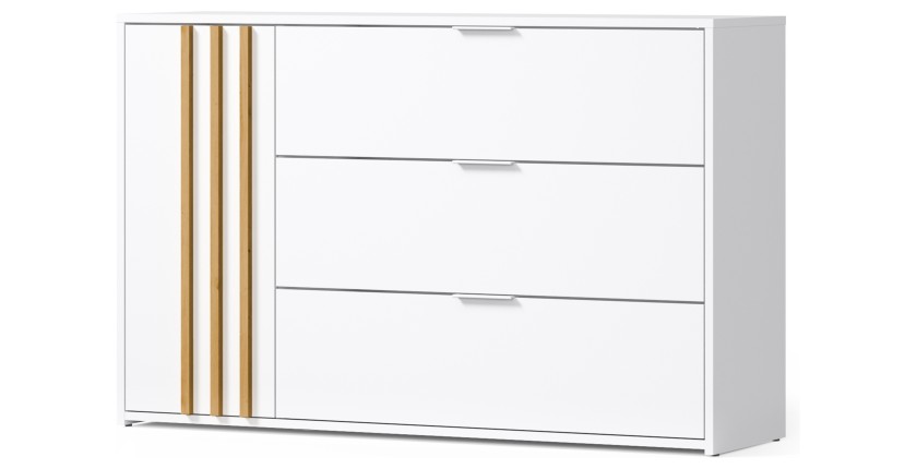 Commode FLORENCE – Blanc et chêne – 1 porte + 3 tiroirs avec fermeture soft close