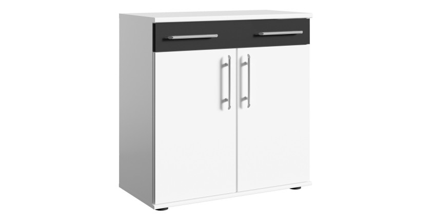 Optez pour la commode blanche DUBLIN, un meuble design alliant praticité et style. Avec ses 2 tiroirs et 2 portes, cette commode offre un espace de rangement optimisé pour votre chambre.