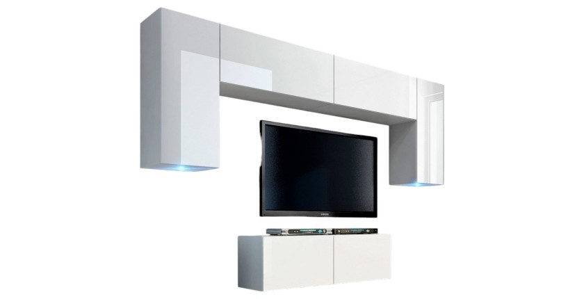 - CARACTÉRISTIQUES : Ensemble de 6 meubles pour composition murale TV, collection CEPTO, 2 étagères, 6 portes.