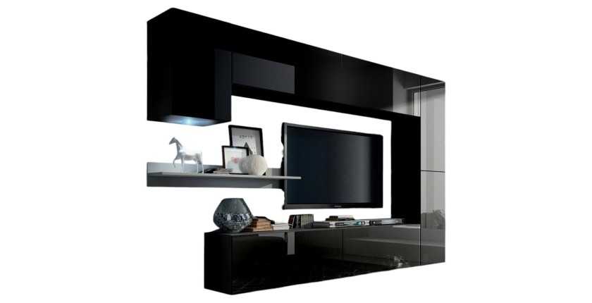 - CARACTÉRISTIQUES : Ensemble de 8 meubles pour composition murale TV, collection CEPTO, 6 étagères dont une murale, 7 portes, leds.