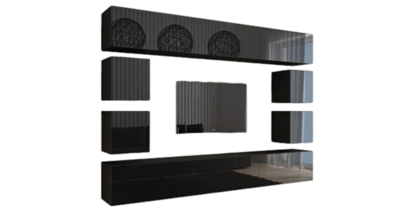 - CARACTÉRISTIQUES : Ensemble de 10 meubles pour composition murale TV, collection CEPTO, 10 portes, leds.