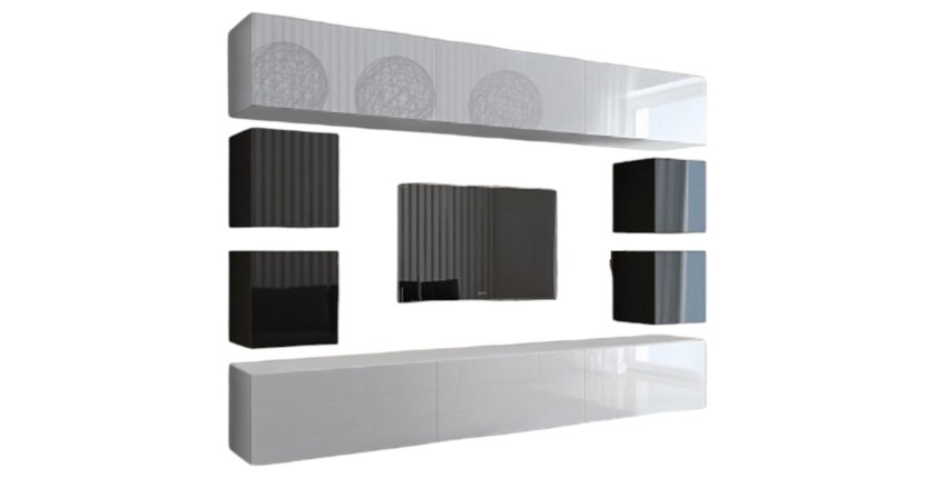 - CARACTÉRISTIQUES : Ensemble de 10 meubles pour composition murale TV, collection CEPTO, 10 portes, leds.