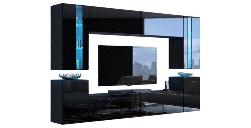 - CARACTÉRISTIQUES : Ensemble de 8 meubles pour composition murale TV, collection CEPTO, 8 portes, 6 étagères, leds.