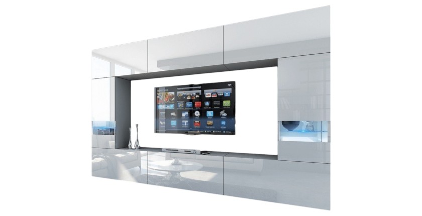 - CARACTÉRISTIQUES : Ensemble de 8 meubles pour composition murale TV, collection CEPTO, 8 portes, leds.