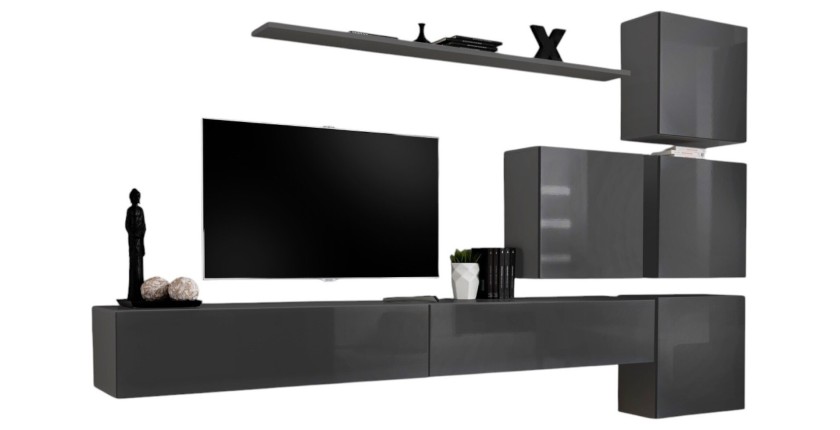 Offrez à votre salon un look contemporain avec le meuble TV mural SWITCH IX en gris brillant. Cet ensemble design combine grands volumes de rangement et lignes minimalistes pour sublimer votre mur TV.