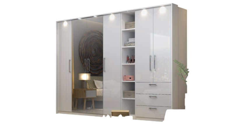 Offrez à votre chambre un dressing fonctionnel et design avec le dressing d'angle MODULO. Son coloris blanc brillant et son éclairage LED intégré apporteront une touche moderne et élégante à votre intérieur. Grâce à sa conception intelligente et modulaire, il s'adapte à vos besoins en rangement et optimise votre espace.