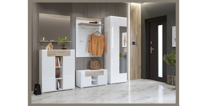 Un ensemble de meubles pour l'entrée comme le modèle OHIO présente de nombreux avantages. Il permet de créer un espace harmonieux et organisé où chaque élément a sa place. Avec ses multiples solutions de rangement, cet ensemble vous aide à garder votre entrée propre et accueillante, tout en offrant un accès facile à vos affaires quotidiennes. Les finitions design ajoutent une touche moderne à votre intérieur, et la structure robuste assure une durabilité à long terme. Que ce soit pour ranger vos chaussures, accrocher vos manteaux ou simplement ajouter une touche de style, l'ensemble OHIO répond à tous vos besoins.