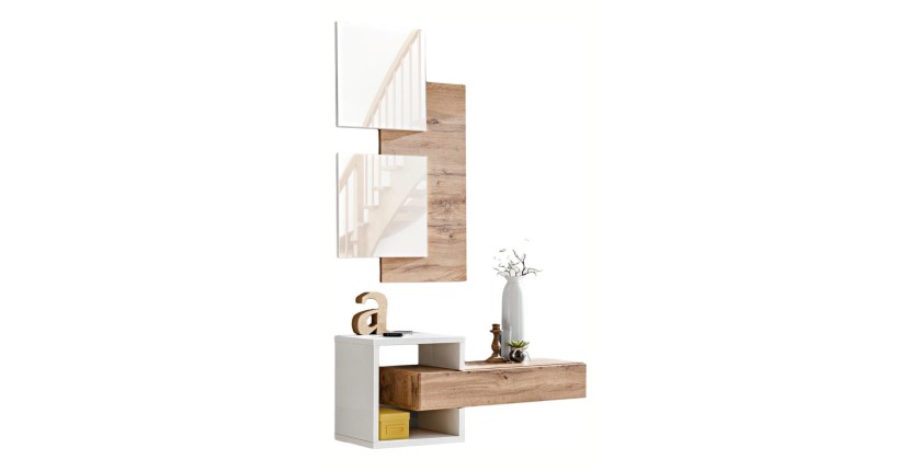 Meuble d’entrée TORTH 2 – Ensemble complet – Coloris chêne et blanc