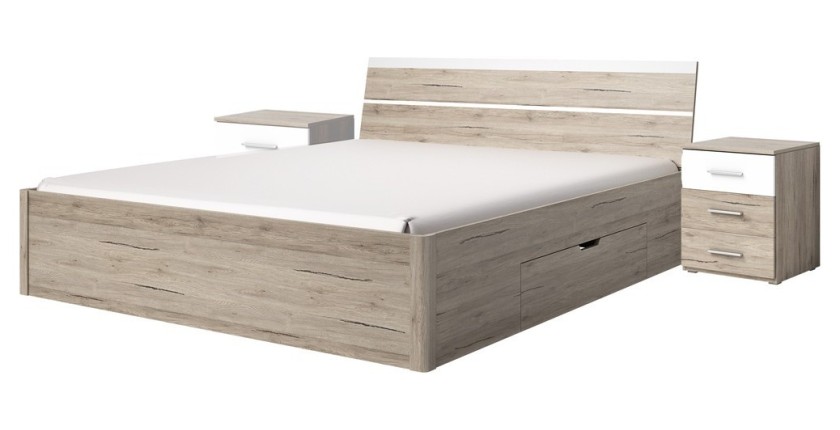 - MODELE : Ensemble EOS composé d'un lit avec tiroirs, de deux chevets et d'un sommier 180x200
