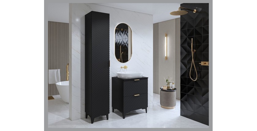 Apportez une touche luxueuse à votre salle de bain avec ce pack de la collection CHIC. Ce pack comprend un meuble sous vasque de 60 cm avec 2 tiroirs et une colonne de rangement élégante. Chaque meuble est doté de poignées dorées qui contrastent magnifiquement avec le coloris noir, ajoutant une touche de sophistication. Parfait pour optimiser le rangement et l'organisation tout en offrant un design raffiné.