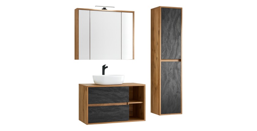 Meuble sous vasque 100 cm finition chêne foncé et ardoise
