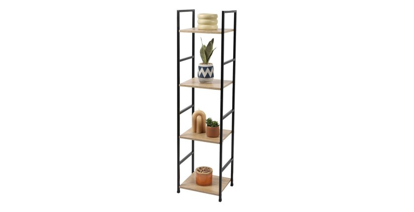 Étagère 4 niveaux HOLBORN – Style industriel en chêne et noir