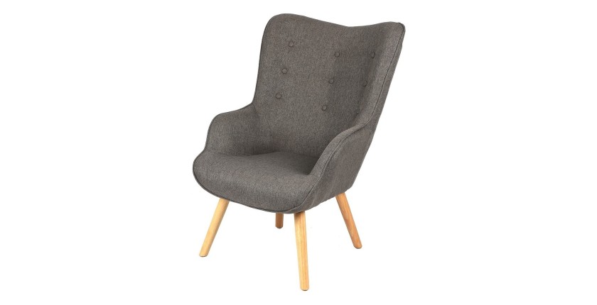 Ajoutez une touche de confort et de style scandinave à votre salon avec ce fauteuil en tissu gris foncé. Conçu pour offrir un confort optimal, ce fauteuil est recouvert d'un tissu doux et agréable au toucher. Avec ses pieds en bois massif et une hauteur d'assise de 42 cm, ce fauteuil allie élégance et confort, parfait pour des moments de détente.