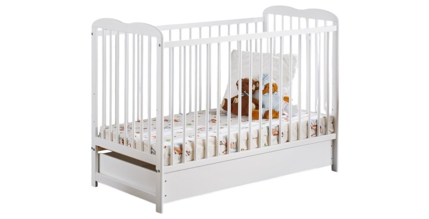 Lit évolutif bébé 60x120 avec tiroir collection NOÉ réglable en hauteur - Matelas inclus. Coloris blanc mat.