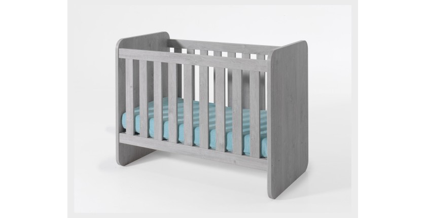 Ce lit bébé évolutif de la collection MATHEO fera de la chambre de votre enfant un véritable cocon. Ce lit est partiellement fermé afin de rassurer votre enfant. Le coloris gris effet bois apportera une touche moderne et chaleureuse à la chambre.